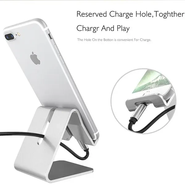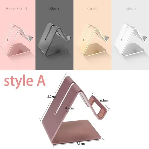 Product: universal mobile phone holder Material: aluminum alloy;ABS; Color :2 different colors for you to choose Features: Provides a great way to protect your phone, ebook, tablet and phone from collisions. Fashionable and concise design, it is the good gift that gives a friend, also be the good adornment of desk. Suitable for mobile phone store or personal use. Suitable for horizontal and vertical use. Packing content :1 PCS
