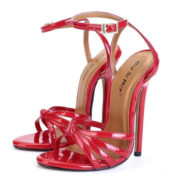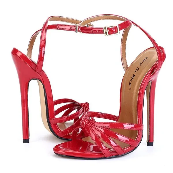 US15 16 17 Summer Stilettos Steel Pipe Dance Shoes Woman 15cm Thin High Heels Elegant Sandals Open Toe Wedding Pumps Female Cross Strap RED sandalias de las mujeres