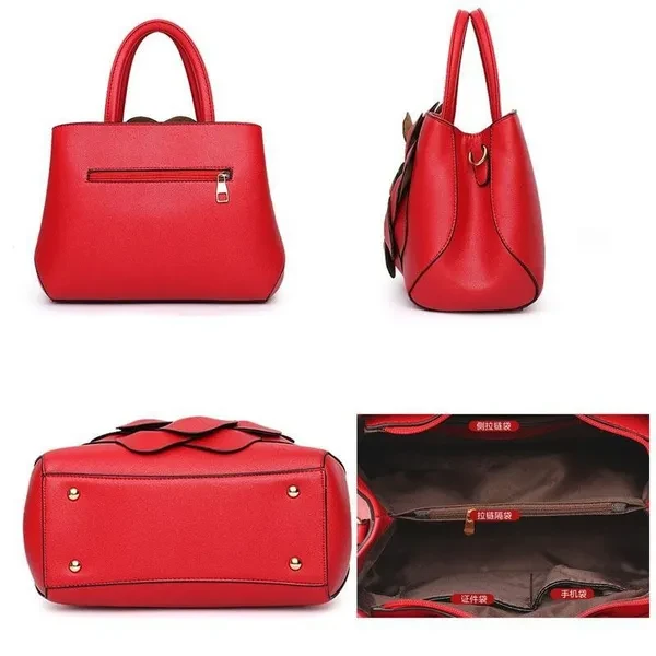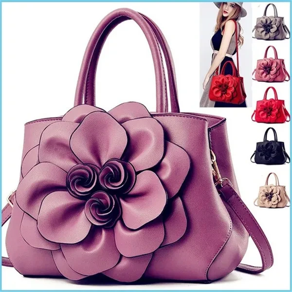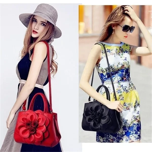 Vintage Women Leather Handbag Hollow Out 3D Rose Flowers Casual Crossbody Shoulder Bag Party Bag Purse