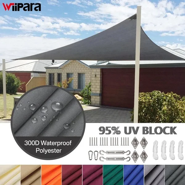 WIIPARA Sun Shade Sail Waterproof for Garden Patio Swimming Pool Antiuv Awning Canopy Sunscreen Outdoor Furniture Cover House Decor Triangle 2m3m3.6m5m, with Installation Hardware Kit and Ropes