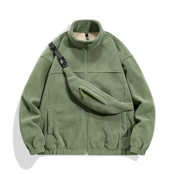 Winter fleece warm cardigan jacket sweatshirt men's solid color trend polar fleece padded stand collar jacket men's top