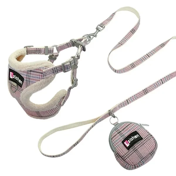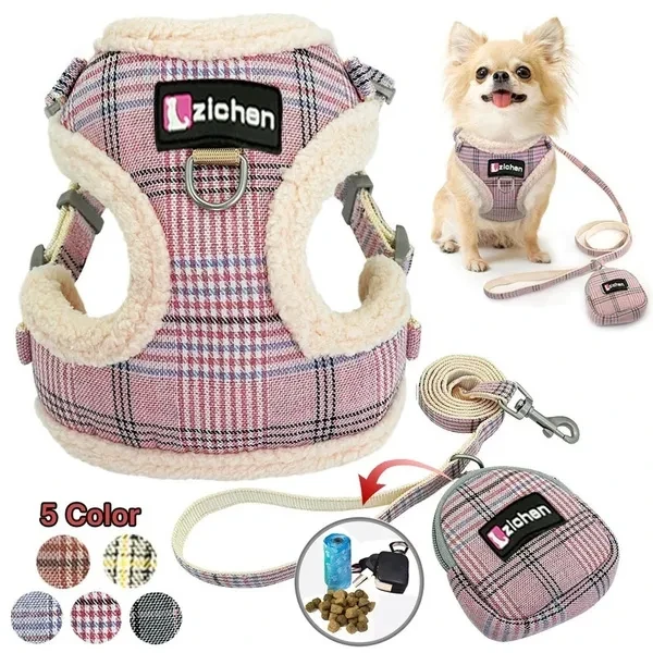 Winter Warm Dog Cat Harness and Leash Set Adjustable Puppy Vest Lead Mesh Pet Harness Chest Strap Leash for Small Dogs Cats