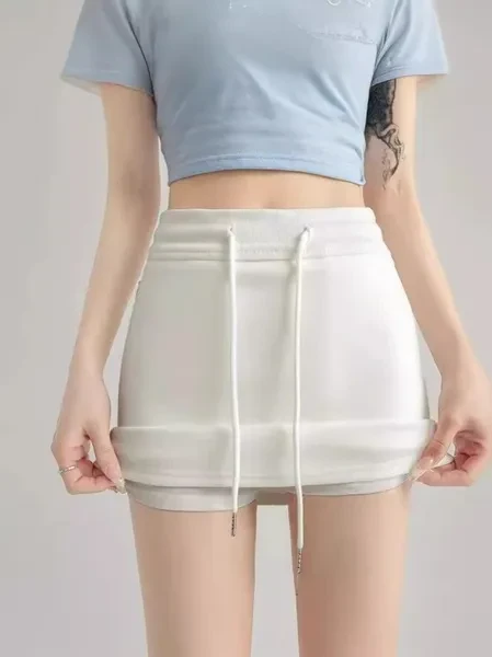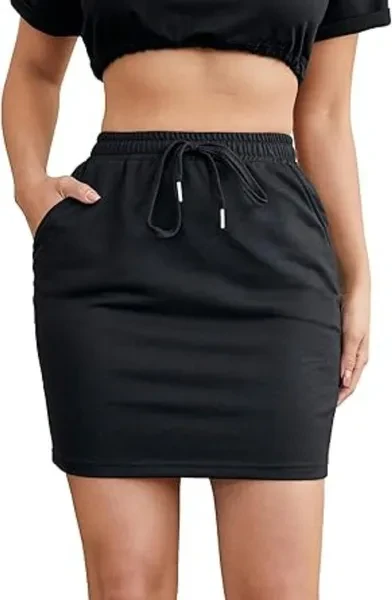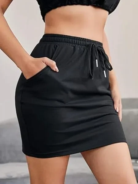 Women Casual High Waist A-line Mini Skirt Drawstring Workout Skirt with Pocket