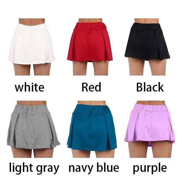 Women Fashion Double-Layer Athletic Short Skirt Fitness Yoga Short Skirt Badminton Breathable Quick Drying Skirts Ladies Sport Anti Exposure Tennis Skirt