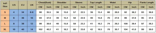 Size Bust Shoulder Sleeve Top Length Waist US EU UK