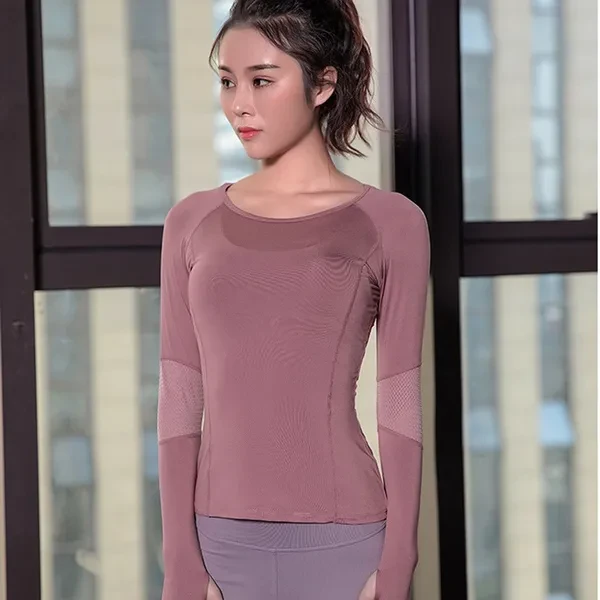 Women Mesh Hollow Out Yoga Top Full Sleeve Sport Shirt Quick Dry Fitness Clothing Gym Running Jogging Shirts Slim Activewear