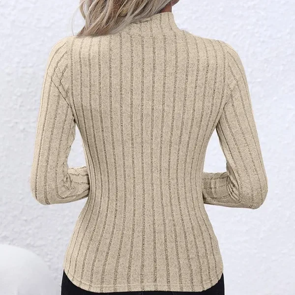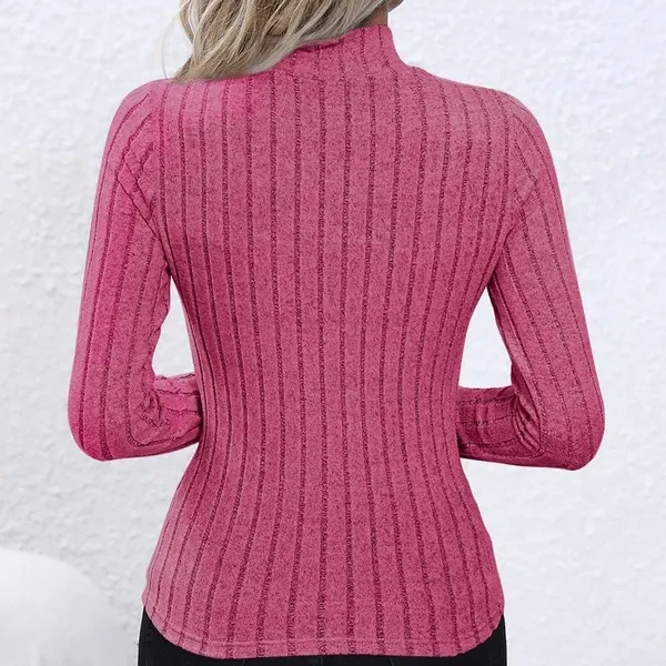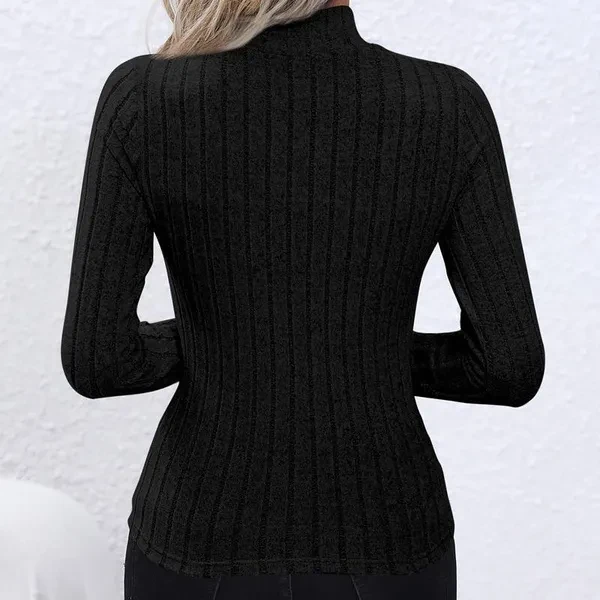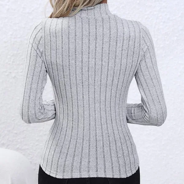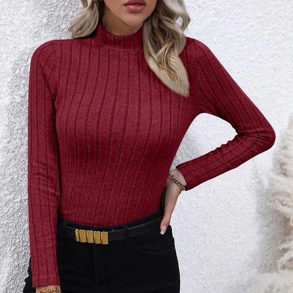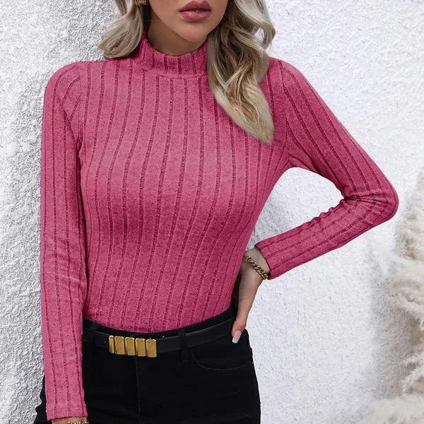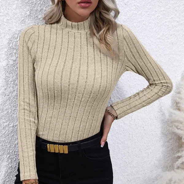 Women's Autumn Winter High Collar Long Sleeve Kniited Blouses Fashion Pit Strip Slimming Blouses Ladies Sexy Tops