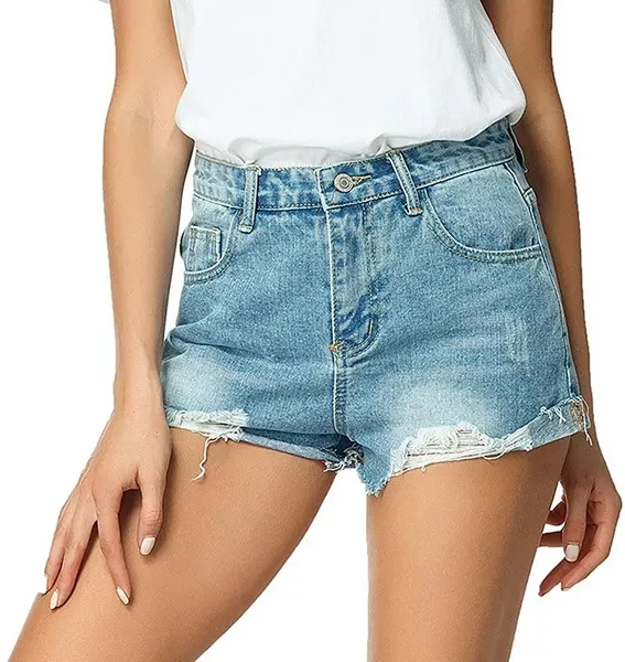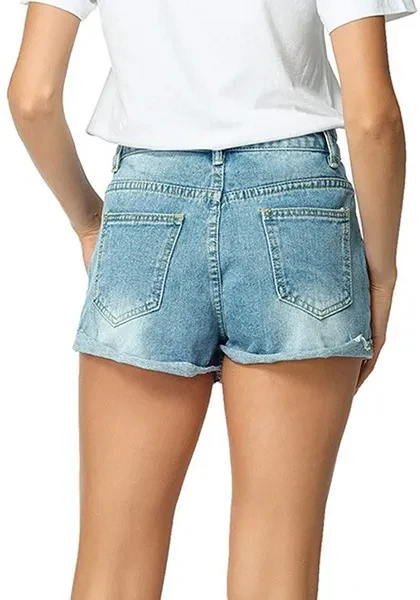 Women's Casual High Rise Roll-Up Raw Hem Denim Jean Shorts