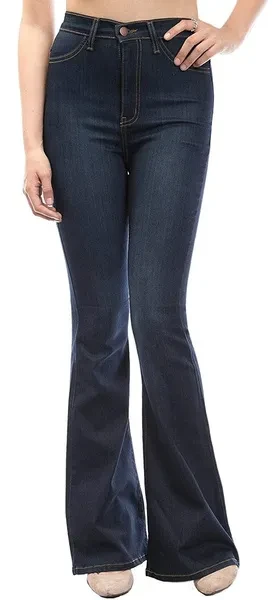 Women's Classic High Waist Denim Bell Bottoms Jeans