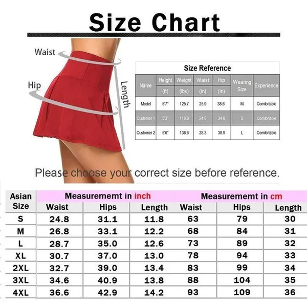 Material: Polyester (polyester) Polyester, Spandex pattern: Solid color Season:Summer Color:As Picture Show Size:XS-5XL Skirt type: A-line skirt Skirt length: short skirt Set Include: 1pc Short Skirt Feature£º *Lightweight, Wrinkle resistant,Stretch,Comfortable to wear,Breathable,Skin-friendly and Quick-drying *high performance fabric.Let you enjoy the exercise and stay cool and dry. *Good stretchy, soft and smooth, lightweight and breathable material make you stay cool and comfy in summer day *Perfect for gym, exercise, running, tennis, hiking, workout, golf, walking, daily wear, school and any exercise or fitness-related activities *Secure & Comfortable Two Layer - skirt outer and shorts inner, you can enjoy your sports without worries.Double layer triangle shaped gusset avoids riding up & pinching, enhances your range of motion. *Perfect sport skirt - Perfect for tennis, golf, cycling, volleyball, running, hiking, walking, dance, skate, gym workouts, any outdoor activities or daily casual wear.