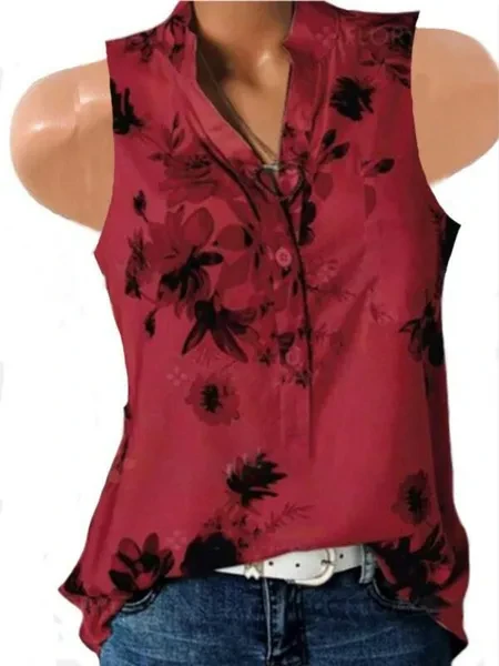 Gender:Women Season:Summer Pattern Type: Floral Print Sleeve Length: sleeveless shirt Style: Casual,Fashion Available Color: White , Red, Blue, Pink, Grey, Green Size:XS~8XL Please check the size,the size chart in picture or in description is the real Hope our product will meet your expect. If you love it,please give us a five-star feedback or upload your beautiful photos as buyers show, to be a reference to other beauties. Your support is our motivation Thank you very much! Please make sure the size would fit you. Note: Due to the difference between different monitors, the picture may not reflect the actual color of the item.