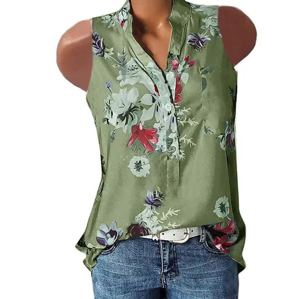 Womens Fashion Summer Sexy V-neck Sleeveless Blouse Loose Floral Printed Casual Tank Tops Blouse Shirt Plus Size XS-6XL