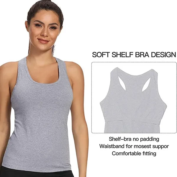 Women's Racerback Tank Top with Built-in Shelf Bra Stretch Workout Sport Cami Yoga Exercise Running Camisole Shirt Summer Top Vest