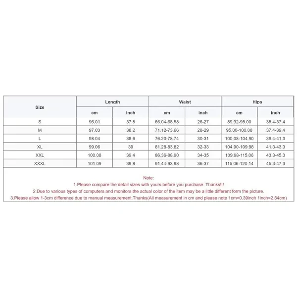 <p>Features: Quality: soft Polyester material. stretchy, breathable and skin-friendly. Multiusage pants,wide, roomy legs have oversized high side slits. high rise elastic waistband elastic hems pants shape and make you and stylish. Occasions,our flowy split leg pants will bring a novelty fashion to you the slit only opens up while you uplifts your leg.for yoga, pilates, dancing, running, , sleeping. Great for doing some exercises like yoga, Pilates at home, or wearing them as a bathing suit cover up after shower, even wearing them to dinner with a crop top; also, they're good for summer beachwear, bikinis or swimsuit cover up Wonderful gift,sweet warm gift for friend family or yourself. Specifications: Material:Polyester Color:Dark Gray,Black,White, Size:S Length:96.01cm(37.8inch) Waist:66.04-68.58cm(26-27inch) Hips:89.92-95.cm(35.4-37.4inch) Size:M Length:97.03cm(38.2inch) Waist:71.12-73.66cm(28-29inch) Hips:95.00-100.08cm(37.4-39.4inch) Size:L Length:98.04cm(38.6inch) Waist:76.20-78.74cm(30-31inch) Hips:100.08-104.90cm(39.4-41.3inch) Size:XL Length:99.06cm(39inch) Waist:81.28-83.82cm(32-33inch) Hips:104.90-109.98cm(41.3-43.3inch) Size:XXL Length:100.08cm(39.4inch) Waist:86.36-88.90cm(34-35inch) Hips:109.98-115.06cm(43.3-45.3inch) Size:XXXL Length:101.09cm(39.8inch) Waist:91.44-93.98cm(36-37inch) Hips:115.06-120.14cm(45.3-47.3inch) Package Includes: 1 Piece Women's Yoga Harem Pants Side Slit note: Please allow 1-2cm errors due to manual measurement,please make sure that you do not mind before you order. Due to the difference between different monitors, the picture may not reflect the actual color of the item. </p>