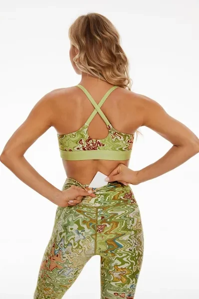 Pattern Description: Inspired by the gentle sway of water waves, our designer has created this pattern in unique camo color hues to celebrate freedom, a connection with nature, and personal style. Illusion-amo print doesn't just help you make a statement, it also encourages you to let your inner light shine brightly. Product Features: High-waisted design perfectly shapes, supports and flatters any body types No small elastic band at the top A hidden pocket at the back No side seams for extra flattering fit and comfort Fabric: Made with 84% RPET and 16% spandex from recycled plastic bottles and it is 100% recyclable! - Four-way stretch, breathable and anti-bacterial. Model Info: Juliana;// Height: 5'8// Bust 33.1” // Waist 23.6” // Hips 35.8//SILVERWIND size Regular S