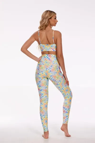 Pattern Description: The pattern design incorporates the traditional Eastern tie-dye technique, showcasing a unique artistic style and a sense of mystery. Within the vibrant seamless pattern, numerous small geometric shapes intertwine, creating a flowing and dynamic visual effect. Primarily in yellow and blue hues with accents of green and pink, it's like a beautiful and crystal lattice, evoking a refreshing and peaceful atmosphere. The central point symbolizes the radiant center of the universe and the power of unity, resulting in a harmonious overall design. Combined with the designs of radiance and starry skies, it makes your workouts no more dull and monotonous. Product Features: High-waisted design perfectly shapes, supports and flatters any body types. No small elastic band at the top. Two side pockets for essentials. No side seams for extra flattering fit and comfort. Stretchy and light fabric for a smoothing, second-skin feel. Fabric: Made with 84% RPET and 16% spandex from recycled plastic bottles and it is 100% recyclable! - Four-way stretch, breathable and anti-bacterial. Model Info: Evy// Height: 5'8 // Bust 33.9” // Waist 24.4” // Hips 36.6 //SILVERWIND size Regular S